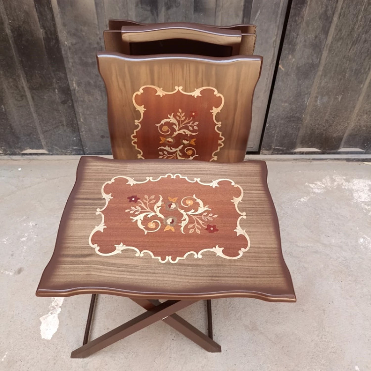 میز عسلی چهارتیکه تاشو مدل مستطیل معرق در چهار سایز یکسان بسیار شیک و زیبا و کمجا