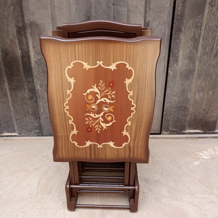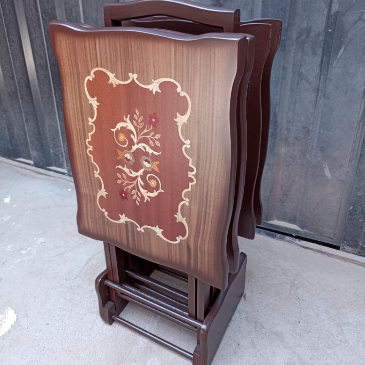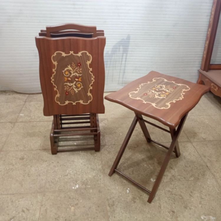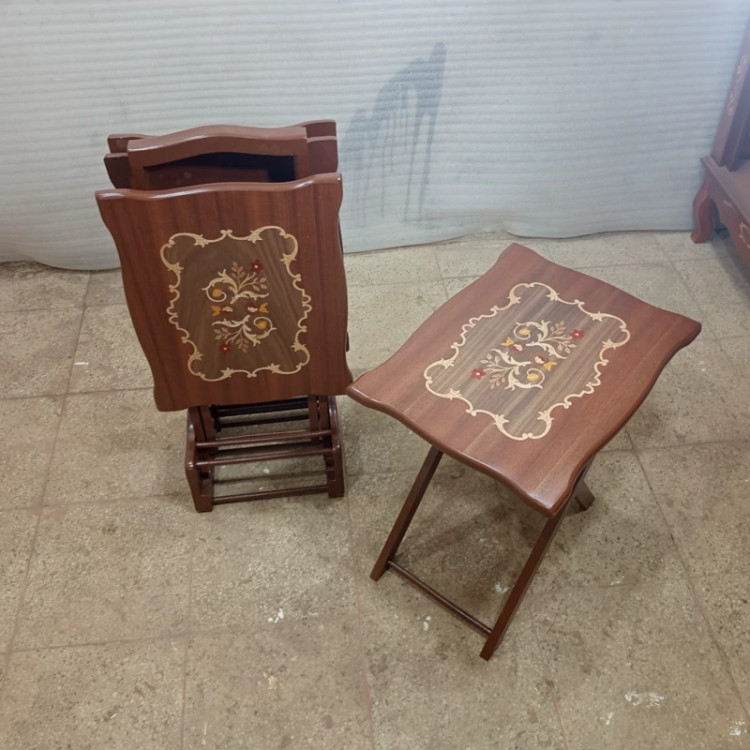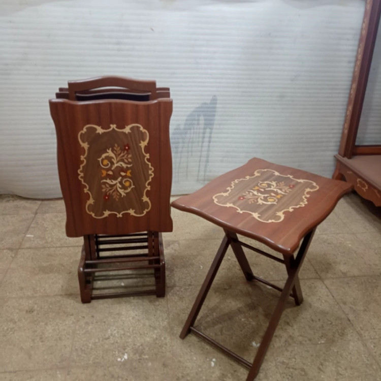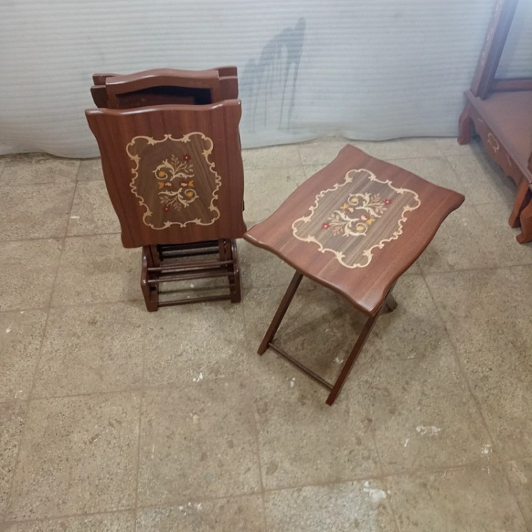 میز عسلی چهارتیکه تاشو مستطیل معرق فروش به صورت نقد و اقساط چوب راش گرجستان ضمانت 36 ماهه بسیار شیک و زیبا و کمجا