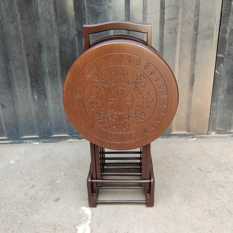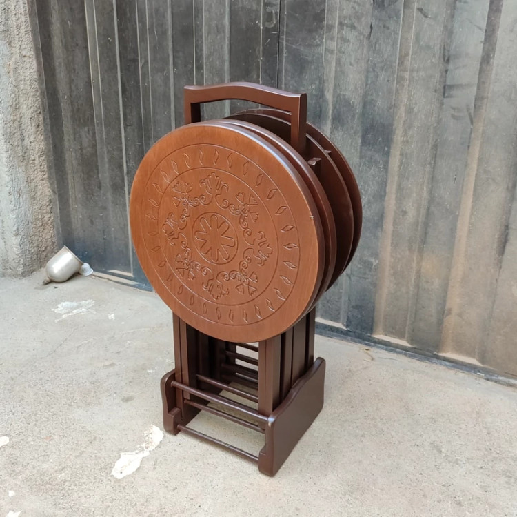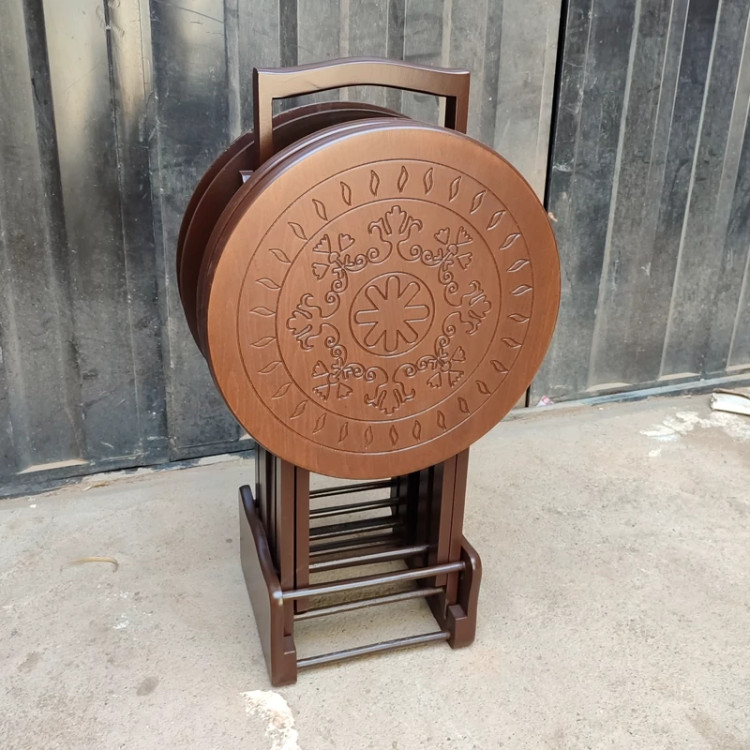 میز عسلی چهارتیکه تاشو گرد CNC فروش به صورت نقد و اقساط چوب راش گرجستان ضمانت 36 ماهه بسیار شیک و زیبا