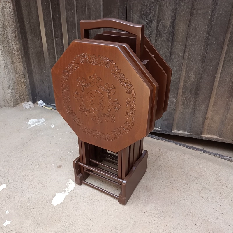 میز عسلی چهارتیکه تاشو هشت ضلعی CNC فروش به صورت نقد و اقساط چوب راش گرجستان ضمانت 36 ماهه بسیار شیک و زیبا