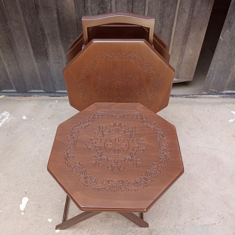 میز عسلی چهارتیکه تاشو هشت ضلعی صفحه CNC کاری با دستگاه در چهار سایز یکسان بسیار شیک و زیبا در رنگ بندی مختلف به سلیقه شما