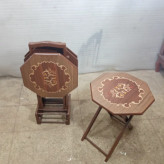 میز عسلی چهارتیکه تاشو هشت ضلعی معرق فروش به صورت نقد و اقساط چوب راش گرجستان ضمانت 36 ماهه بسیار شیک و زیبا و کمجا