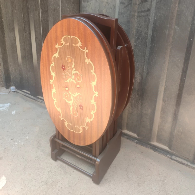 میز عسلی چهارتیکه تاشو بیضی معرق فروش به صورت نقد و اقساط چوب راش گرجستان ضمانت 36 ماهه بسیار شیک و زیبا