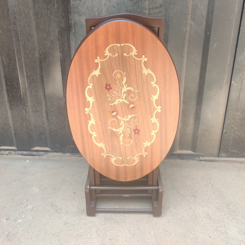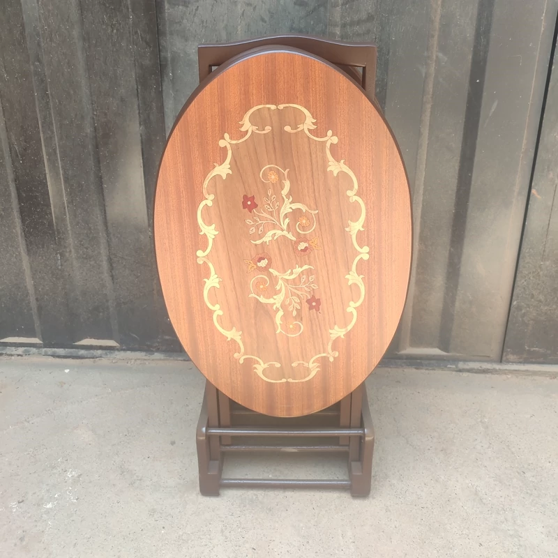 میز عسلی چهارتیکه تاشو بیضی معرق فروش به صورت نقد و اقساط چوب راش گرجستان ضمانت 36 ماهه بسیار شیک و زیبا