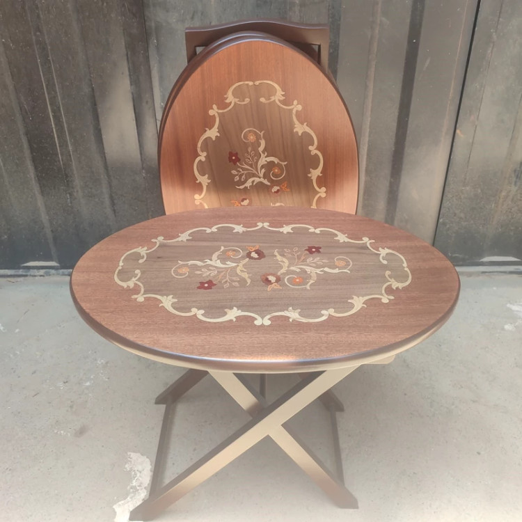 میز عسلی چهارتیکه تاشو بیضی معرق فروش به صورت نقد و اقساط چوب راش گرجستان ضمانت 36 ماهه بسیار شیک و زیبا