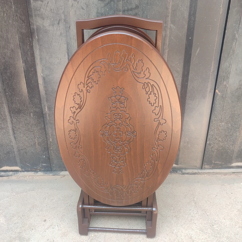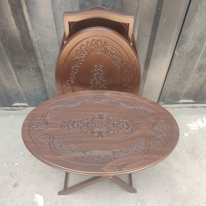 میز عسلی چهارتیکه تاشو بیضی CNC فروش به صورت نقد و اقساط چوب راش گرجستان ضمانت 36 ماهه بسیار شیک و زیبا