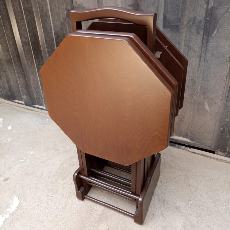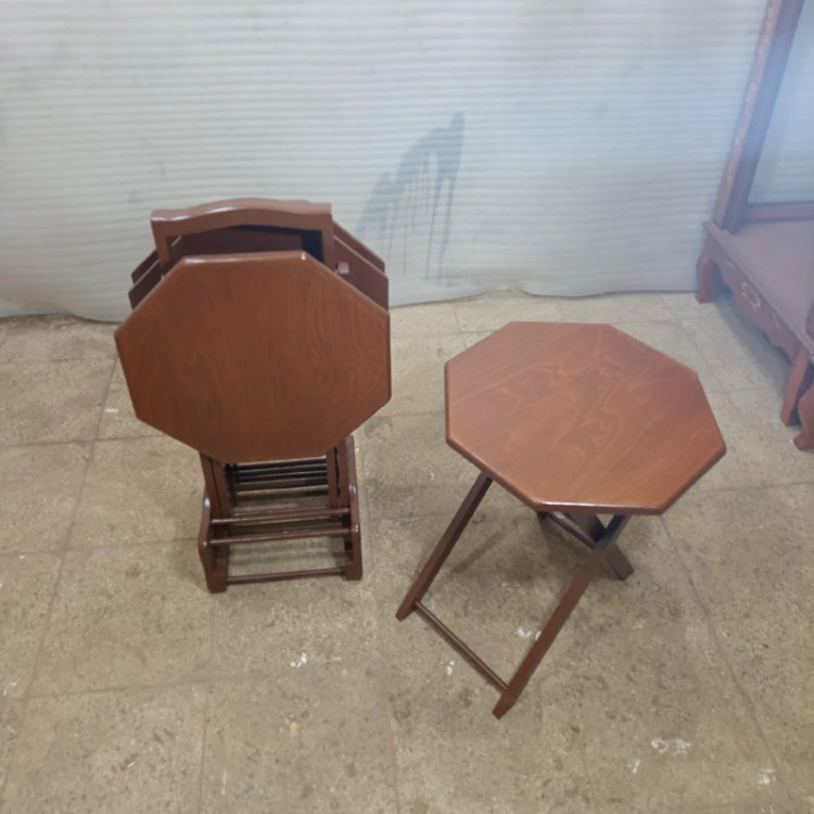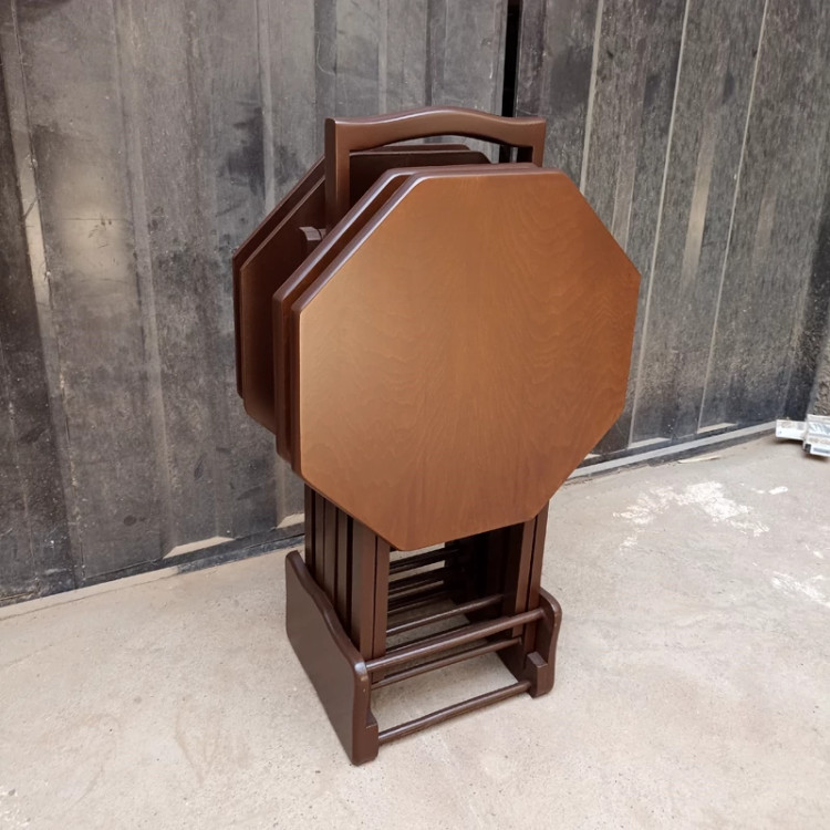 میز عسلی چهارتیکه تاشو هشت ضلعی فروش به صورت نقد و اقساط چوب راش گرجستان ضمانت 36 ماهه بسیار شیک و زیبا و کمجا