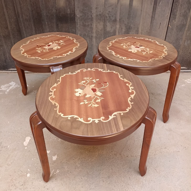 میز عسلی سه تیکه روهمشو معرق فروش به صورت نقد و اقساط چوب راش گرجستان ضمانت 36 ماهه بسیار شیک و زیبا